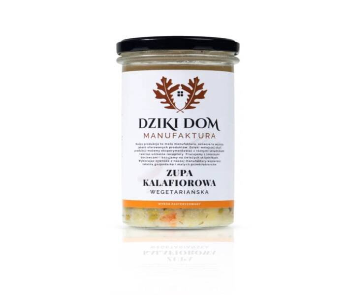 Nasza zupa przygotowana jest bez mięsa, dodatku mąki i bez laktozy. Jest idealną opcją dla wegetarian, wegan, osób na diecie bezglutenowej oraz z nietolerancją laktozy. Do zabielenia zupy użyliśmy mleka sojowego, co dodatkowo wzbogaca smak zupy kalafiorowej i gwarantuje niską zawartość tłuszczu. W naszym słoiku znajdziesz mnóstwo warzyw, zupa jest gęsta i treściwa. Zapraszamy do spróbowania i przekonania się, że dania bezmięsne są pyszne i rozgrzewające.
